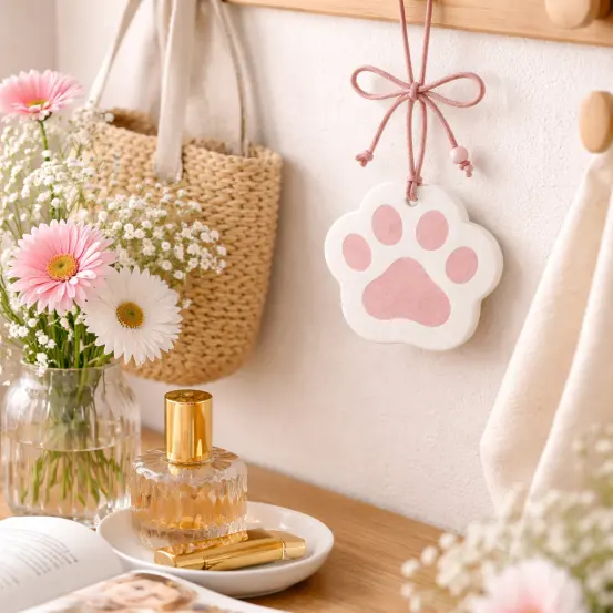 A hanging air freshener is a scented product made from absorbent materials that gradually release fragrance into the air.