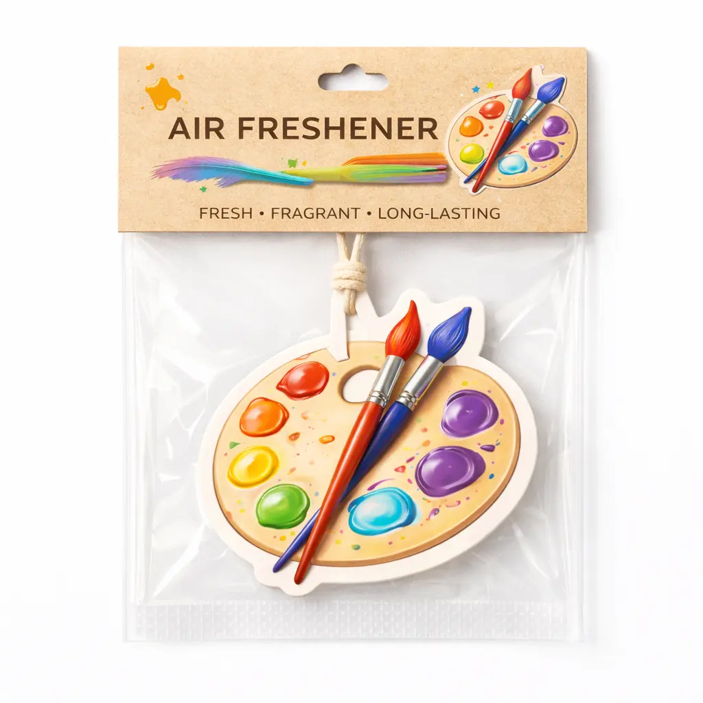 Bring a creative and colorful atmosphere into your space with this artist palette hanging air freshener. Designed with vivid paint details and realistic brush elements, it adds a unique artistic touch while delivering a pleasant and long-lasting fragrance.