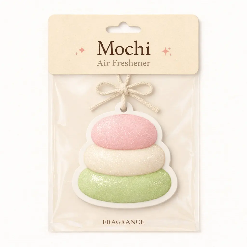 Equipped with a natural jute bow lanyard, it’s easy to hang in cars, closets, bags, or home spaces, adding a charming Japanese dessert-inspired decorative touch. Fully customizable in shape, scent, and packaging, this mochi air freshener is perfect for daily use, gift sets, and promotional campaigns, ideal for dessert lovers and kawaii aesthetic fans.