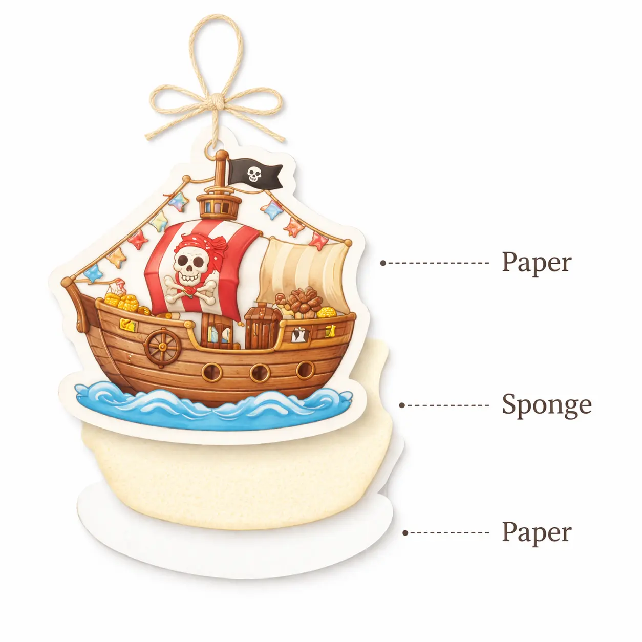 Celebrate everyday freshness with this playful and eye-catching Pirate Ship Hanging Paper Air Freshener. Featuring a fun adventure-themed ship design, each piece is crafted from premium absorbent paper and infused with long-lasting, refreshing fragrance.Perfect for car interiors, home decoration, gift sets, or promotional use, this hanging air freshener brings a unique and lively touch to any space. Designed with a 3-layer structure (Paper + Sponge + Paper), it ensures a steady and balanced scent release for up to 30–45 days.Fully customizable in shape, fragrance, and packaging, making it an ideal choice for brands, retailers, and seasonal or themed collections.