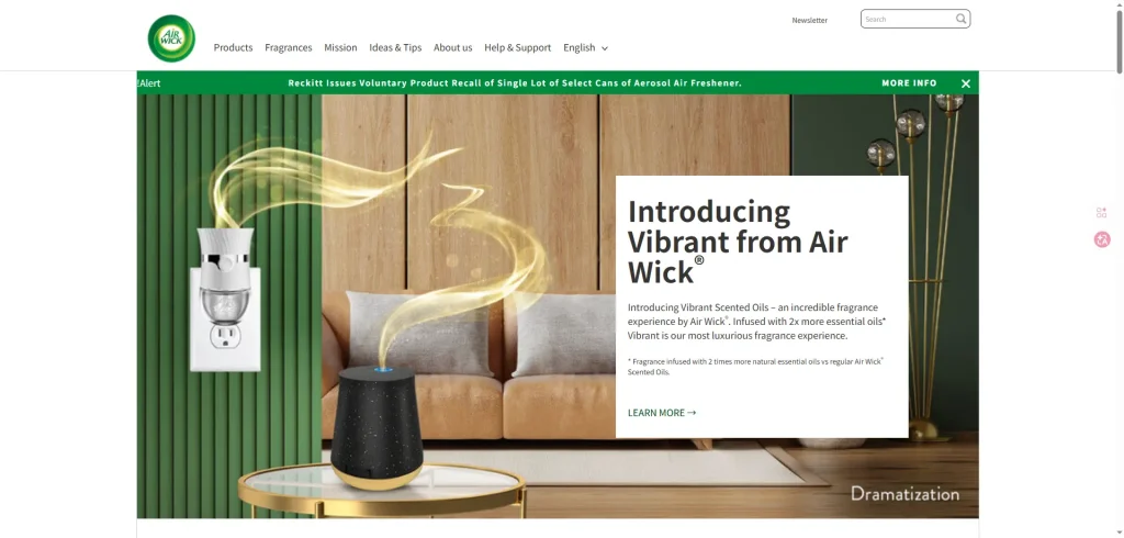 Air Wick offers a wide range of home fragrance products including diffusers and sprays.